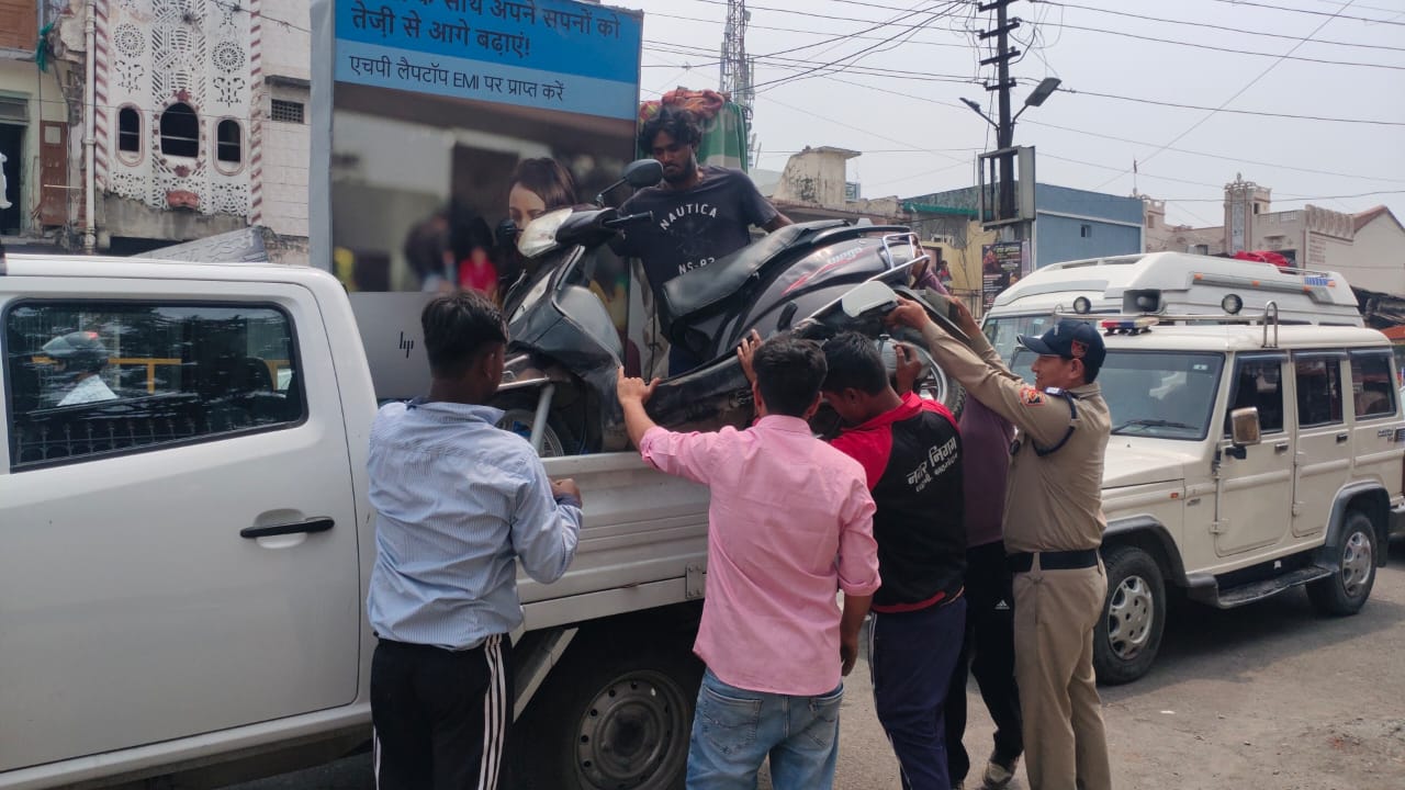 प्रशासन का डंडा, अवैध पार्किंग पर 54 चालान, 5 दोपहिया जब्त