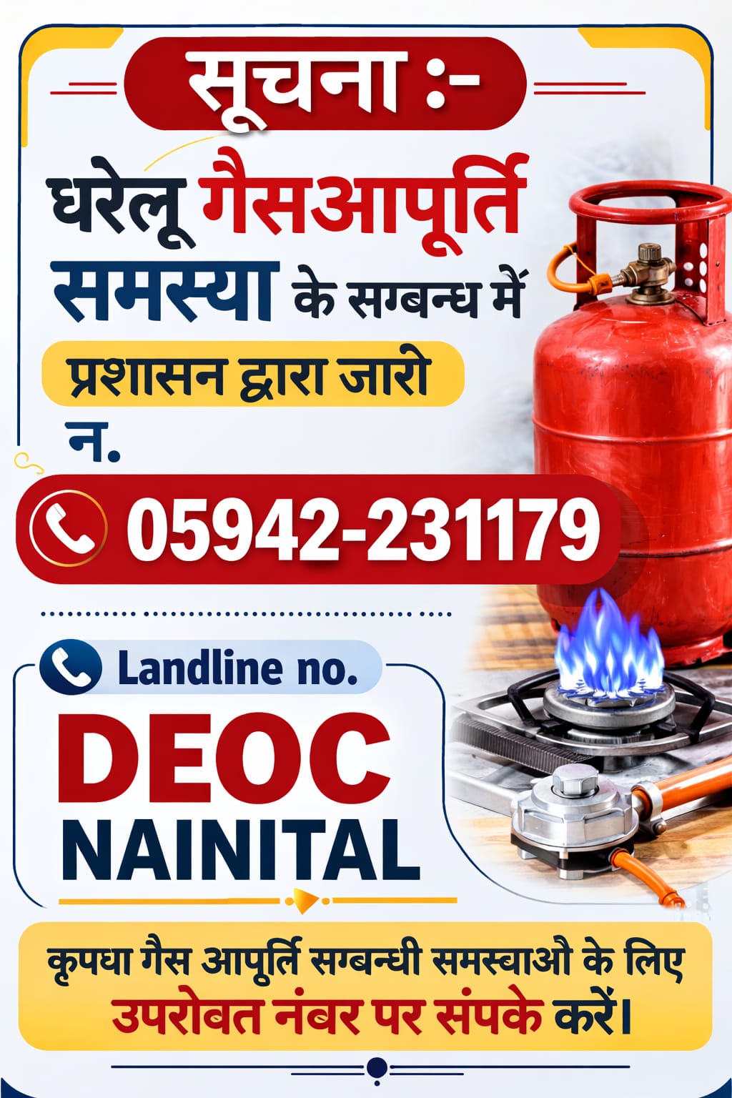 हल्द्वानी। घरेलू गैस सिलेंडरों की कालाबाजारी, जमाखोरी और व्यवसायिक उपयोग की शिकायतों को गंभीरता से लेते हुए जिला प्रशासन ने सख्त रुख अपनाया है। जिलाधिकारी ललित मोहन रयाल ने स्पष्ट निर्देश दिए हैं कि घरेलू गैस सिलेंडरों के कमर्शियल डायवर्जन को किसी भी स्थिति में बर्दाश्त नहीं किया जाएगा और ऐसे मामलों में दोषियों के खिलाफ कड़ी वैधानिक कार्रवाई सुनिश्चित की जाएगी। जिलाधिकारी ने सभी परगना अधिकारियों, पुलिस क्षेत्राधिकारियों और पूर्ति निरीक्षकों को निर्देशित किया है कि वे घरेलू गैस के व्यवसायिक इस्तेमाल और कालाबाजारी पर कड़ी निगरानी रखें।