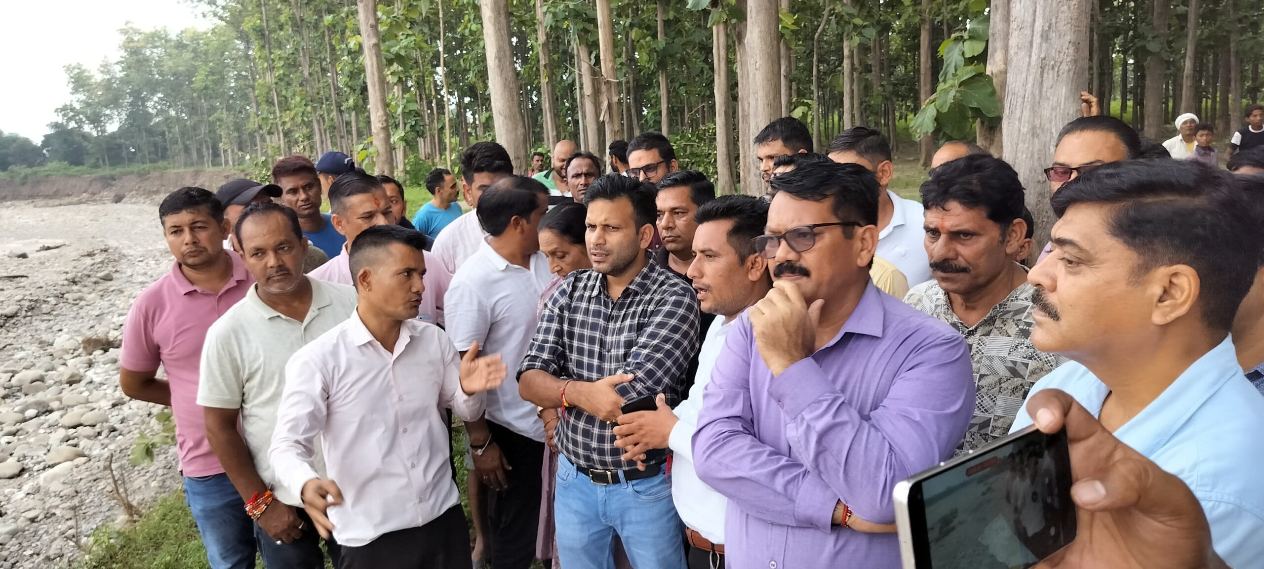 हल्द्वानी। चोरगलिया क्षेत्र में नंधौर नदी से हो रहे तेज भूमि कटाव को लेकर प्रशासन हरकत में आ गया है। एसडीएम हल्द्वानी राहुल शाह ने शुक्रवार को सिंचाई, वन और राजस्व विभाग के अधिकारियों के साथ खानवाल, मुखानी खडकू, आमखेड़ा, डुबैलबीड़ा, शागुन प्लांटेशन एरिया और सुनारदड़ा बिहारी नगर समेत कई प्रभावित स्थानों का स्थलीय निरीक्षण किया। इस दौरान कटाव प्रभावित इलाकों में नदी के डायवर्जन और चैनलाइजेशन की रूपरेखा तैयार की गई। एसडीएम राहुल शाह ने बताया कि जिलाधिकारी नैनीताल द्वारा पहले ही सिंचाई विभाग को आपदा प्रबंधन अधिनियम के तहत नंधौर नदी के प्रवाह को नियंत्रित करने के आदेश दिए गए हैं।निरीक्षण में अधिशासी अभियंता दिनेश रावत ने ऐसे कई स्थानों की पहचान की, जहां तत्काल डायवर्जन और चैनलाइजेशन कर निजी एवं वन भूमि को कटाव से बचाया जा सकता है।