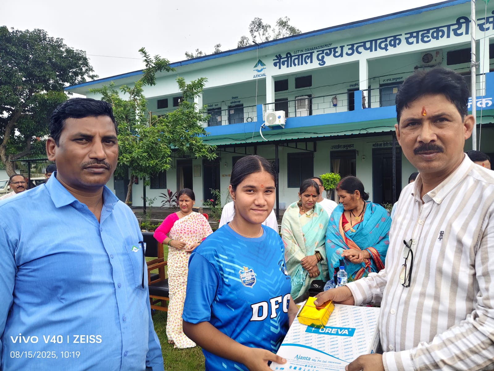 लालकुआं। 79वें स्वतंत्रता दिवस का पर्व नैनीताल दुग्ध उत्पादक सहकारी संघ लिमिटेड के प्रशासनिक भवन परिसर में देशभक्ति और उल्लास के बीच मनाया गया। ध्वजारोहण कर संघ के अध्यक्ष मुकेश बोरा ने समारोह की शुरुआत की, जिसके बाद वातावरण राष्ट्रगान और कुमाऊँनी देशभक्ति गीतों की गूंज से सराबोर हो उठा। कार्यक्रम में स्वतंत्रता सेनानियों और शहीद वीरों को नमन किया गया। नन्हे-मुन्ने बच्चों ने रंगारंग सांस्कृतिक प्रस्तुतियों से उपस्थितजनों का दिल जीत लिया। बच्चों के गीतों और प्रस्तुतियों ने हर दिल में देशप्रेम का उत्साह और गर्व की भावना जागृत कर दी।