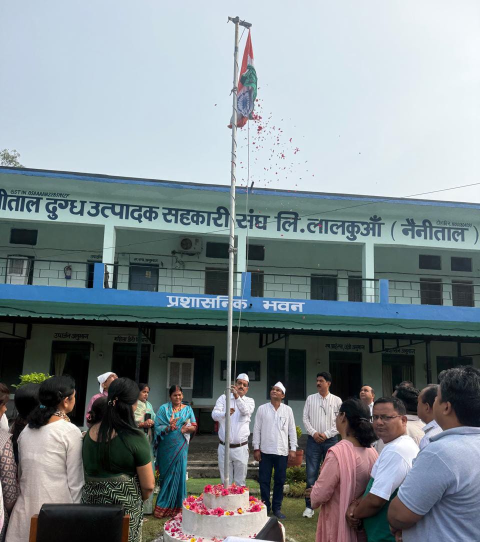 लालकुआं। 79वें स्वतंत्रता दिवस का पर्व नैनीताल दुग्ध उत्पादक सहकारी संघ लिमिटेड के प्रशासनिक भवन परिसर में देशभक्ति और उल्लास के बीच मनाया गया। ध्वजारोहण कर संघ के अध्यक्ष मुकेश बोरा ने समारोह की शुरुआत की, जिसके बाद वातावरण राष्ट्रगान और कुमाऊँनी देशभक्ति गीतों की गूंज से सराबोर हो उठा। कार्यक्रम में स्वतंत्रता सेनानियों और शहीद वीरों को नमन किया गया। नन्हे-मुन्ने बच्चों ने रंगारंग सांस्कृतिक प्रस्तुतियों से उपस्थितजनों का दिल जीत लिया। बच्चों के गीतों और प्रस्तुतियों ने हर दिल में देशप्रेम का उत्साह और गर्व की भावना जागृत कर दी।