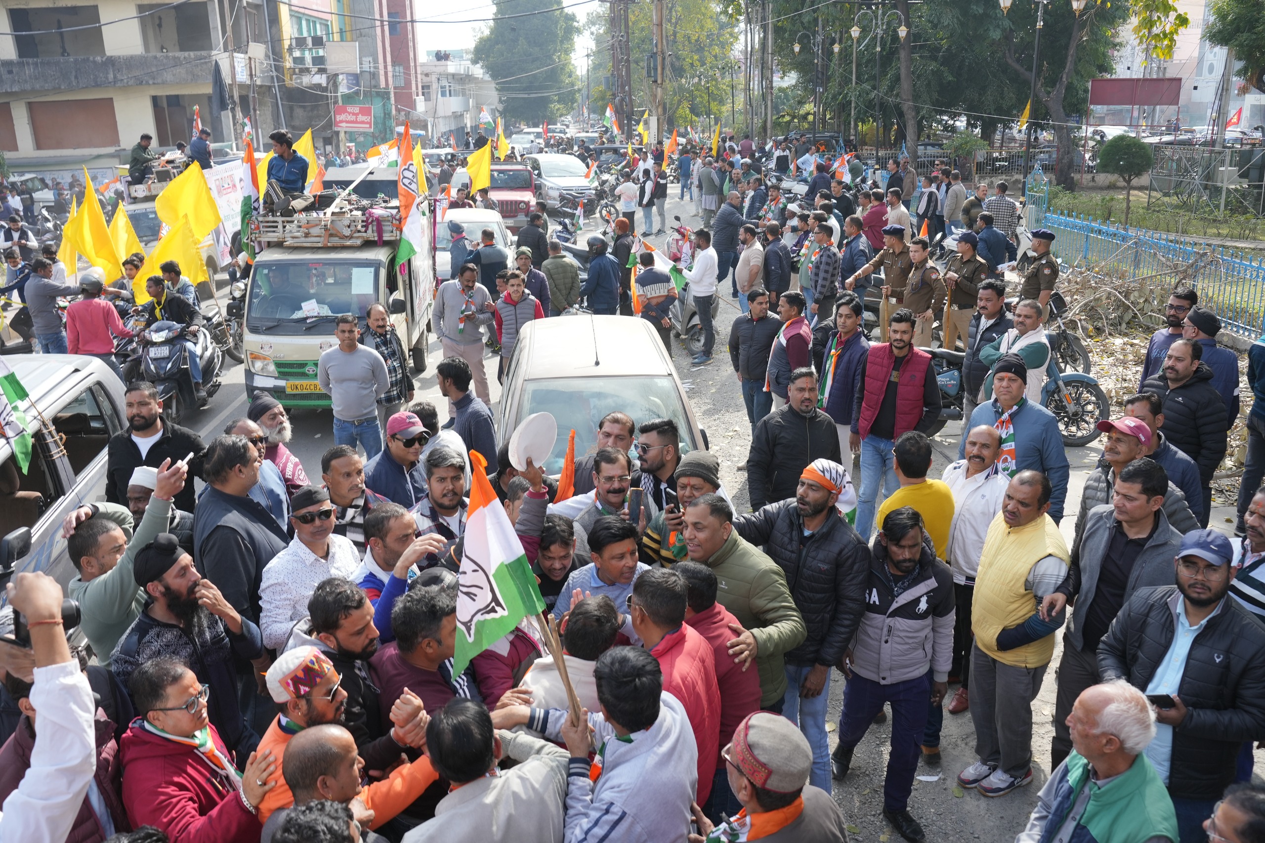 दूसरी ओर, कांग्रेस ने अपने मेयर प्रत्याशी ललित जोशी के समर्थन में एक विशाल रैली का आयोजन किया। रैली ने ठंडी रोड से शुरू होकर नरीमन चौराहा, सिंधी चौराहा और देवलचौड़ तक तीन किलोमीटर का सफर तय किया। कांग्रेस के झंडों से सजी सड़कों और “बदलाव चाहिए” के नारों ने हल्द्वानी को कांग्रेसमय बना दिया। रैली में युवाओं, महिलाओं और बुजुर्गों ने भारी संख्या में भाग लिया। ललित जोशी ने अपने संबोधन में जनता से कहा, “यह चुनाव मैं नहीं, आप लड़ रहे हैं। पिछले दस वर्षों में हल्द्वानी ने जो खोया है, उसे वापस लाने के लिए कांग्रेस तैयार है। जाति और धर्म की राजनीति अब नहीं चलेगी। जनता विकास, रोजगार और बेहतर भविष्य के लिए कांग्रेस पर भरोसा कर रही है।” रैली में उमड़े जनसैलाब ने यह संदेश दिया कि जनता बदलाव चाहती है। भाजपा और कांग्रेस दोनों ही पार्टियां अपने-अपने मेयर प्रत्याशियों के पक्ष में प्रचार में जुटी हैं। जहां भाजपा युवाओं के जोश और अनुशासन का प्रदर्शन कर रही है, वहीं कांग्रेस मातृशक्ति, युवाओं और बुजुर्गों का समर्थन जुटाकर बदलाव की उम्मीद जता रही है। इन शक्ति प्रदर्शनों से यह साफ हो गया है कि हल्द्वानी की जनता विकास और बेहतर भविष्य को लेकर गंभीर है। 23 जनवरी को होने वाले मतदान में जनता का रुख तय करेगा कि हल्द्वानी का भविष्य किस दिशा में जाएगा। फिलहाल, दोनों पार्टियों के प्रदर्शन ने यह संकेत दे दिया है कि इस बार का चुनाव रोचक और ऐतिहासिक होने वाला है।