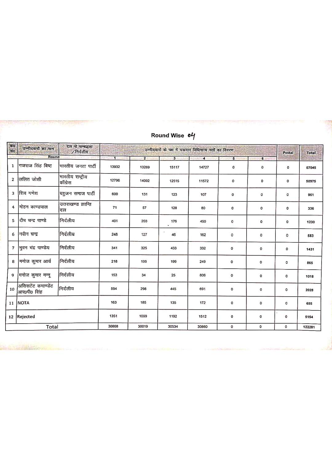 हर राउंड के साथ गजराज सिंह बिष्ट की बढ़त बढ़ती नजर आ रही है। पहले राउंड से ही उन्होंने बढ़त बनाई, जिसे अब तक कायम रखा है। उधर, कांग्रेस के ललित जोशी हर राउंड में कड़ी टक्कर दे रहे हैं, लेकिन मतों के अंतर को पाटने में असफल रहे हैं। मतदान केंद्रों पर भारी सुरक्षा के बीच मतगणना जारी है, और अब सबकी नजरें अगले राउंड के परिणामों पर टिकी हैं, जो इस कांटे की टक्कर को और रोचक बना सकते हैं।