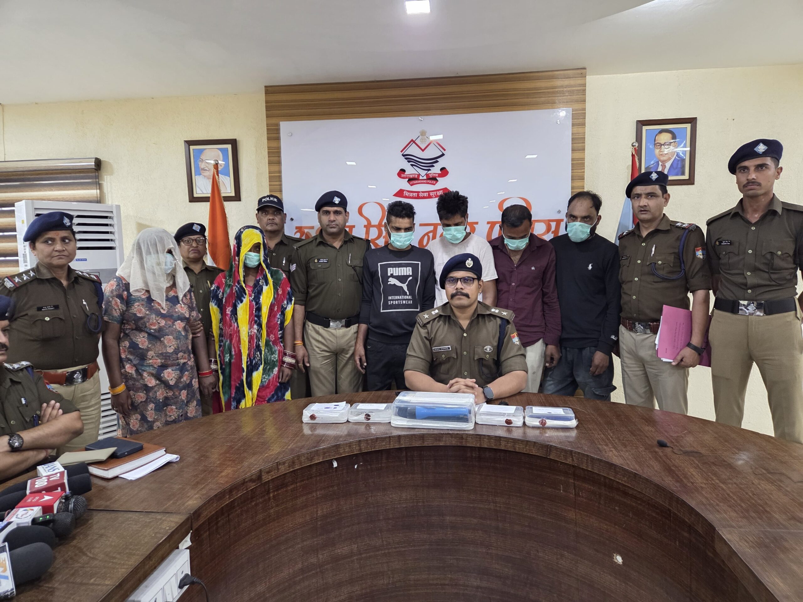 रुद्रपुर/नानकमत्ता। ऊधम सिंह नगर पुलिस ने “अपराध मुक्त देवभूमि” के अभियान के तहत बड़ी कार्रवाई करते हुए महिलाओं के जरिए हनीट्रैप कर लूट, डकैती और ब्लैकमेल की वारदातों को अंजाम देने वाले संगठित गिरोह का भंडाफोड़ किया है। कोतवाली नानकमत्ता पुलिस ने इस गिरोह के छह शातिर आरोपियों को गिरफ्तार किया है, जिनमें चार पुरुष और दो महिलाएं शामिल हैं। पुलिस के अनुसार यह गिरोह महिलाओं के माध्यम से लोगों को फोन कर अपने जाल में फंसाता था और फिर सुनसान स्थान पर बुलाकर उन्हें बंधक बनाकर मारपीट करते हुए लूटपाट करता था। इतना ही नहीं, आरोपी पीड़ितों के अश्लील वीडियो बनाकर उन्हें वायरल करने की धमकी देकर बड़ी रकम की फिरौती भी मांगते थे। घटना 14 मार्च 2026 की रात की है, जब पीड़ित को महिलाओं ने फोन पर मीठी-मीठी बातों में फंसाकर मिलने के बहाने नानकमत्ता क्षेत्र के मच्छी झाला इलाके में बुलाया। जैसे ही पीड़ित अपनी हुंडई आई-10 कार से वहां पहुंचा, पहले से घात लगाए बैठे गिरोह के सदस्यों ने उसे घेर लिया और कार से उतारकर भड़ाभुड़िया स्थित एक मकान में बंधक बना लिया। वहां आरोपियों ने उसके साथ मारपीट की, कपड़े उतरवाकर अश्लील वीडियो बनाया और उसे वायरल करने की धमकी देते हुए 50 लाख रुपये की फिरौती मांगने की कोशिश की। इसी दौरान आरोपियों ने पीड़ित से नगदी, सोने की अंगूठी, दस्तावेज और उसकी कार भी लूट ली और फरार हो गए।