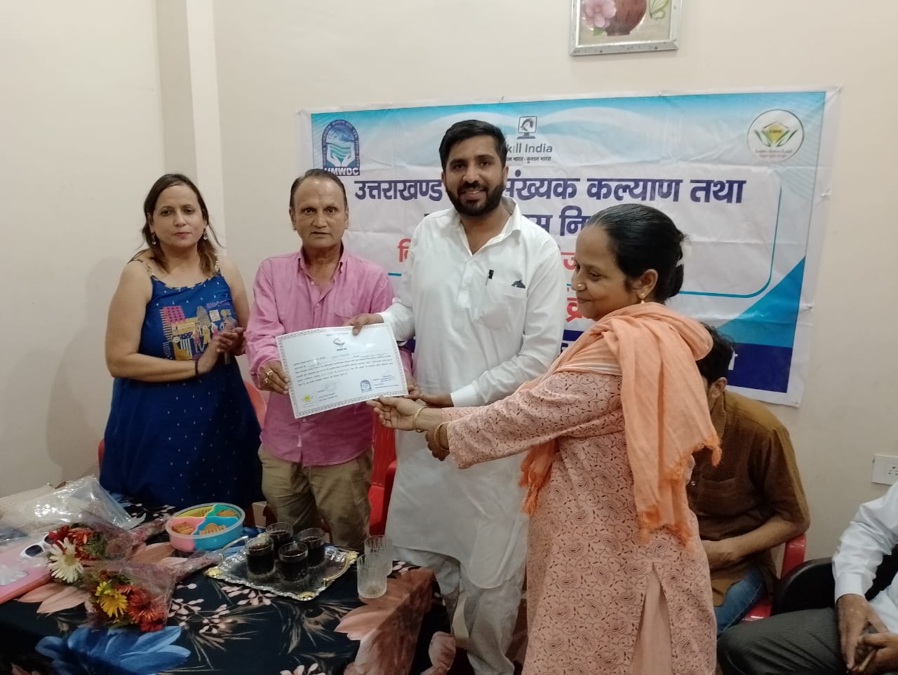 हल्द्वानी। उत्तराखण्ड अल्पसंख्यक कल्याण एवं वक्फ विकास निगम द्वारा प्रायोजित एवं विद्या सोसाइटी के सहयोग से आयोजित निशुल्क फैशन डिजाइनिंग प्रशिक्षण कार्यक्रम का समापन शुक्रवार को सफलतापूर्वक संपन्न हुआ। कार्यक्रम में वार्ड 15 के पार्षद सलमान सिद्दीकी, वार्ड 16 के पार्षद प्रेम बेलवाल, समाजसेवी उजैर सिद्दीकी और मंसूब सिद्दीकी बतौर मुख्य अतिथि शामिल हुए। समापन अवसर पर प्रशिक्षित लाभार्थियों को प्रमाण पत्र वितरित किए गए और प्रत्येक के बैंक खाते में 2500 रुपये की सहायता राशि भी प्रदान की गई।