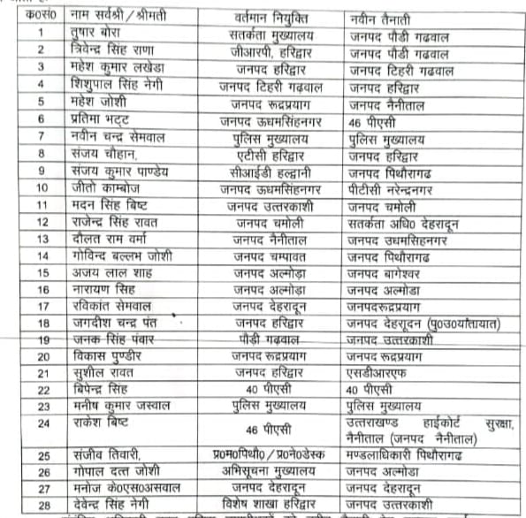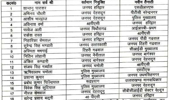 देहरादून। उत्तराखंड पुलिस मुख्यालय ने पुलिस उपाधीक्षकों के तबादले का आदेश जारी कर दिया है। जारी आदेश के तहत कई पुलिस उपाधीक्षकों को उनकी वर्तमान तैनाती से हटाकर नई जिम्मेदारियां सौंपी गई हैं।