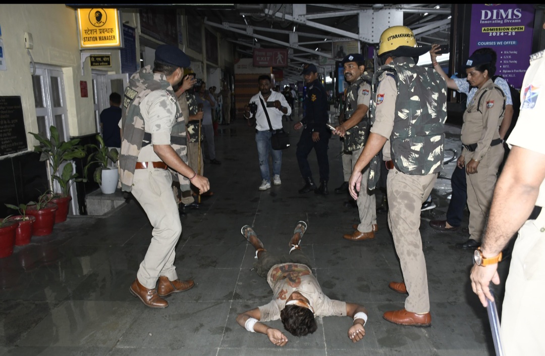 हल्द्वानी। काठगोदाम रेलवे स्टेशन पर बुधवार को एक आतंकवादी हमले की आशंका को केंद्र में रखकर एक उच्च स्तरीय मॉक ड्रिल का आयोजन किया गया। “ऑपरेशन सिंदूर” के तहत जीआरपी काठगोदाम की निगरानी में आयोजित इस अभ्यायास का उद्देश्य ऐसी आपात स्थितियों में सुरक्षा एजेंसियों की त्वरित प्रतिक्रिया और विभागीय समन्वय की कार्यक्षमता को परखना था। मॉक ड्रिल की स्क्रिप्ट के अनुसार सूचना दी गई कि तीन संदिग्ध आतंकवादी दिल्ली जाने वाली शताब्दी एक्सप्रेस पर हमला करने की योजना बना रहे हैं। इसके बाद स्थानीय पुलिस, जीआरपी, एसटीएफ, एसडीआरएफ, फायर ब्रिगेड, चिकित्सा टीम, बम स्क्वॉड, RPF, और 108 एम्बुलेंस समेत तमाम एजेंसियां फौरन हरकत में आईं। पूरे स्टेशन परिसर को घेर कर काल्पनिक मुठभेड़ और रेस्क्यू ऑपरेशन को अंजाम दिया गया।