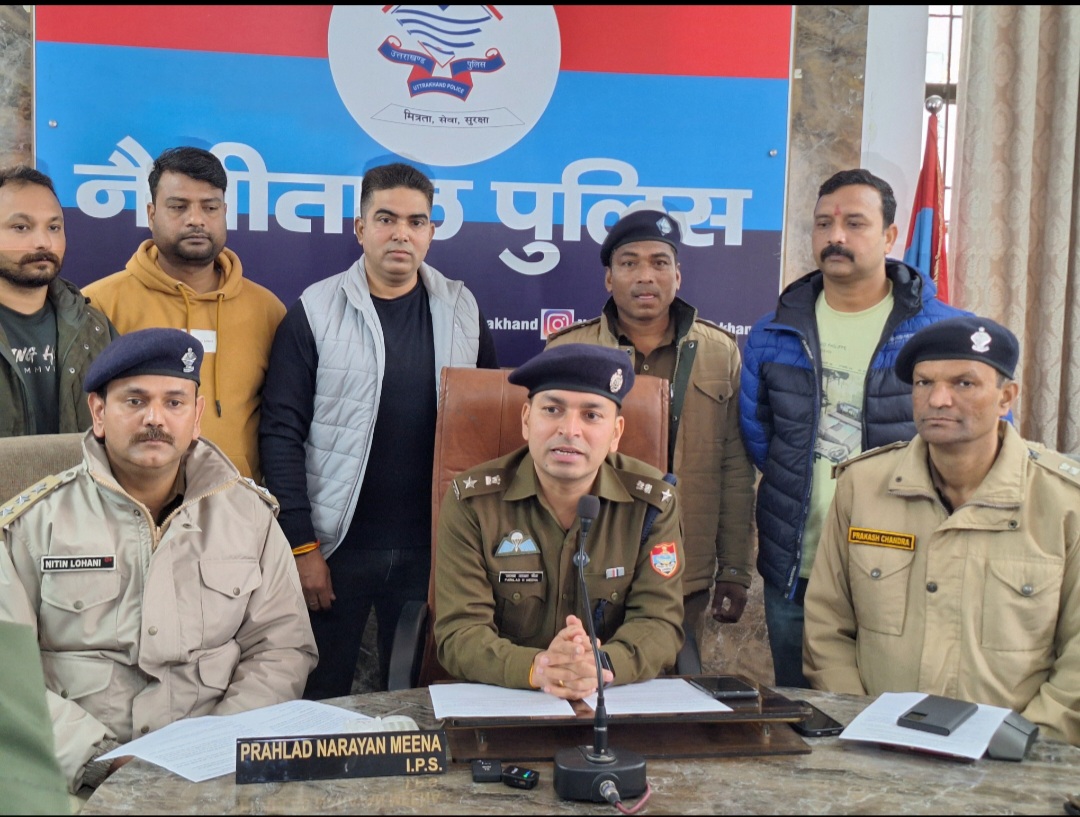 हल्द्वानी। नैनीताल जिले में एसएसपी प्रह्लाद नारायण मीणा के नेतृत्व में पुलिस ने दो अलग-अलग मामलों में बड़ी कार्रवाई करते हुए अपराधियों पर शिकंजा कसा। एक ओर मुखानी क्षेत्र में हुए चोरी के मामले का खुलासा किया गया, तो दूसरी ओर नशे के कारोबार पर प्रहार करते हुए भारी मात्रा में चरस बरामद की गई। इन कार्रवाइयों से न केवल जिले में कानून व्यवस्था मजबूत हुई है, बल्कि अपराधियों को कड़ा संदेश भी दिया गया है। पहला मामला में मुखानी थाना क्षेत्र में 13 से 15 नवंबर 2024 के बीच हुई चोरी के मामले में पुलिस ने तेजी से जांच करते हुए आरोपी को गिरफ्तार कर लिया। पीड़ित दीपेंद्र चंद पांडे ने अपने घर से सोने के जेवर और नकदी चोरी होने की शिकायत दर्ज कराई थी। पुलिस टीम ने सीसीटीवी फुटेज और सटीक जानकारी के आधार पर आरोपी राजकुमार राठौर (22 वर्ष) को पकड़ा। उसके पास से चोरी किए गए कंगन, मंगलसूत्र और अंगूठी बरामद की गई। एसएसपी मीणा ने बताया कि आरोपी पहले भी चोरी के मामलों में जेल जा चुका है।