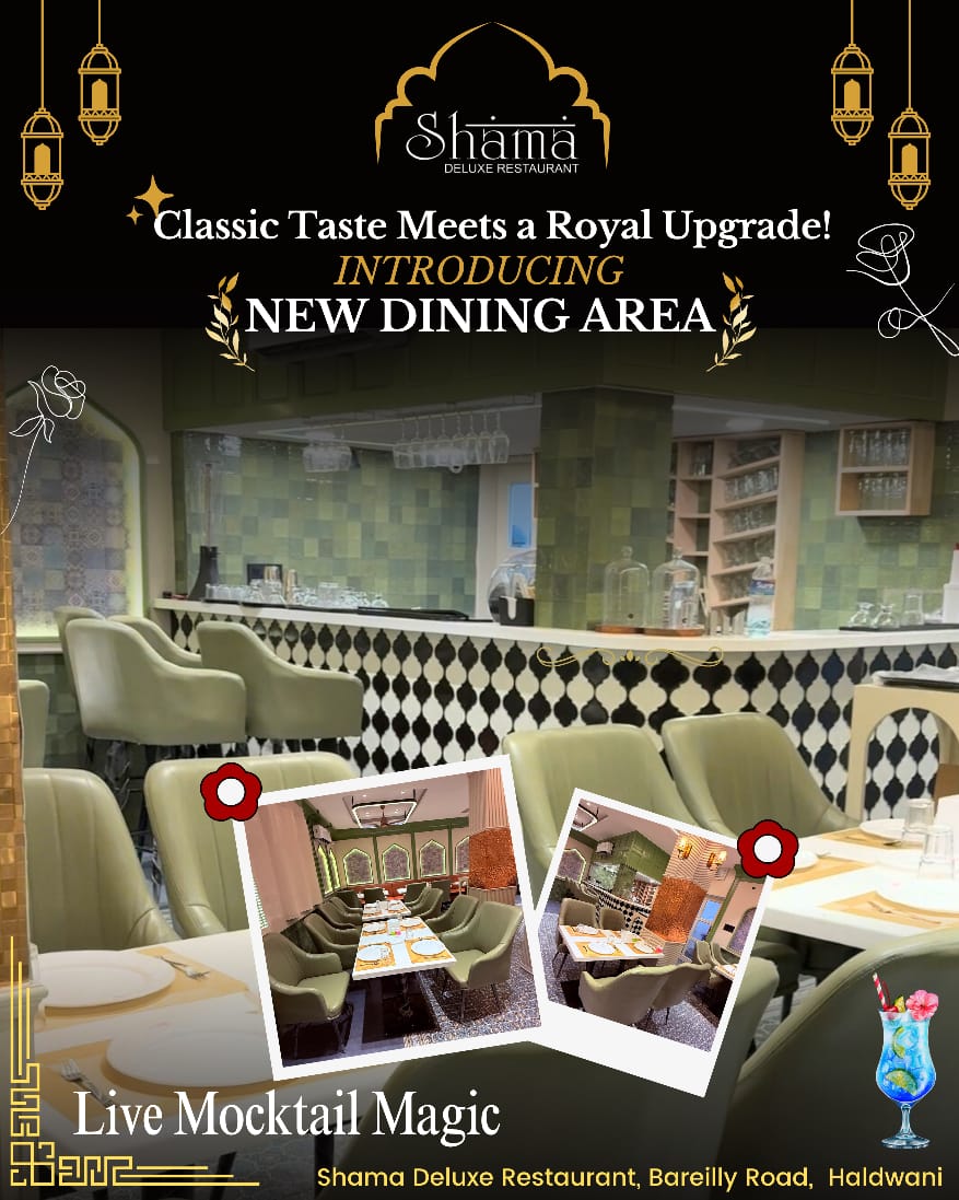 हल्द्वानी। शहर के दिल में बसे शमा डिलक्स रेस्टोरेंट ने अब अपने ग्राहकों को एक नया अनुभव देने की तैयारी पूरी कर ली है। रेस्टोरेंट ने खुद को एक नए, आकर्षक और लग्ज़री रूप में प्रस्तुत करते हुए एक आधुनिक हॉल की सुविधा भी जोड़ दी है, जहां स्वादिष्ट व्यंजनों के साथ मॉकटेल की विशेष सुविधा भी ग्राहकों को दी जाएगी। शमा डिलक्स रेस्टोरेंट के संचालक आमिर हमज़ा ने बताया कि ग्राहकों की सुविधाओं और बढ़ती मांग को देखते हुए रेस्टोरेंट को अपग्रेड किया गया है।