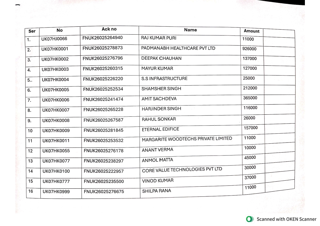 देहरादून। शहर में फैंसी वाहन नंबरों को लेकर हुए ऑक्शन में इस बार जबरदस्त प्रतिस्पर्धा देखने को मिली, जहां खास नंबरों के लिए बोली लगाने वालों में उत्साह साफ नजर आया। सबसे अधिक आकर्षण का केंद्र बना नंबर UK07 HK 0001, जिसे रिकॉर्ड बोली के साथ खरीदा गया। आरटीओ प्रशासन संदीप सैनी ने जानकारी देते हुए बताया कि फैंसी नंबरों की नीलामी में UK07 HK 0001 को पद्मनाभ हेल्थकेयर प्राइवेट लिमिटेड ने 9 लाख 26 हजार रुपये की सर्वाधिक बोली लगाकर अपने नाम किया, जो इस ऑक्शन का सबसे महंगा नंबर रहा।